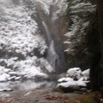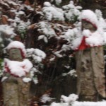 12/9 初雪の釜ケ滝 お地蔵さんも雪化粧 流しそうめん冬眠へ