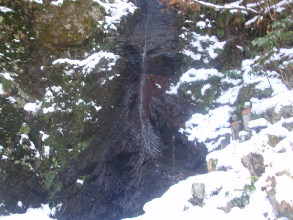 今回は、行者の滝の写真を撮りました。雪道に釜が滝へ出かけた足跡がありました。こんな雪の中でも釜が滝へ行く人がいるものですね!